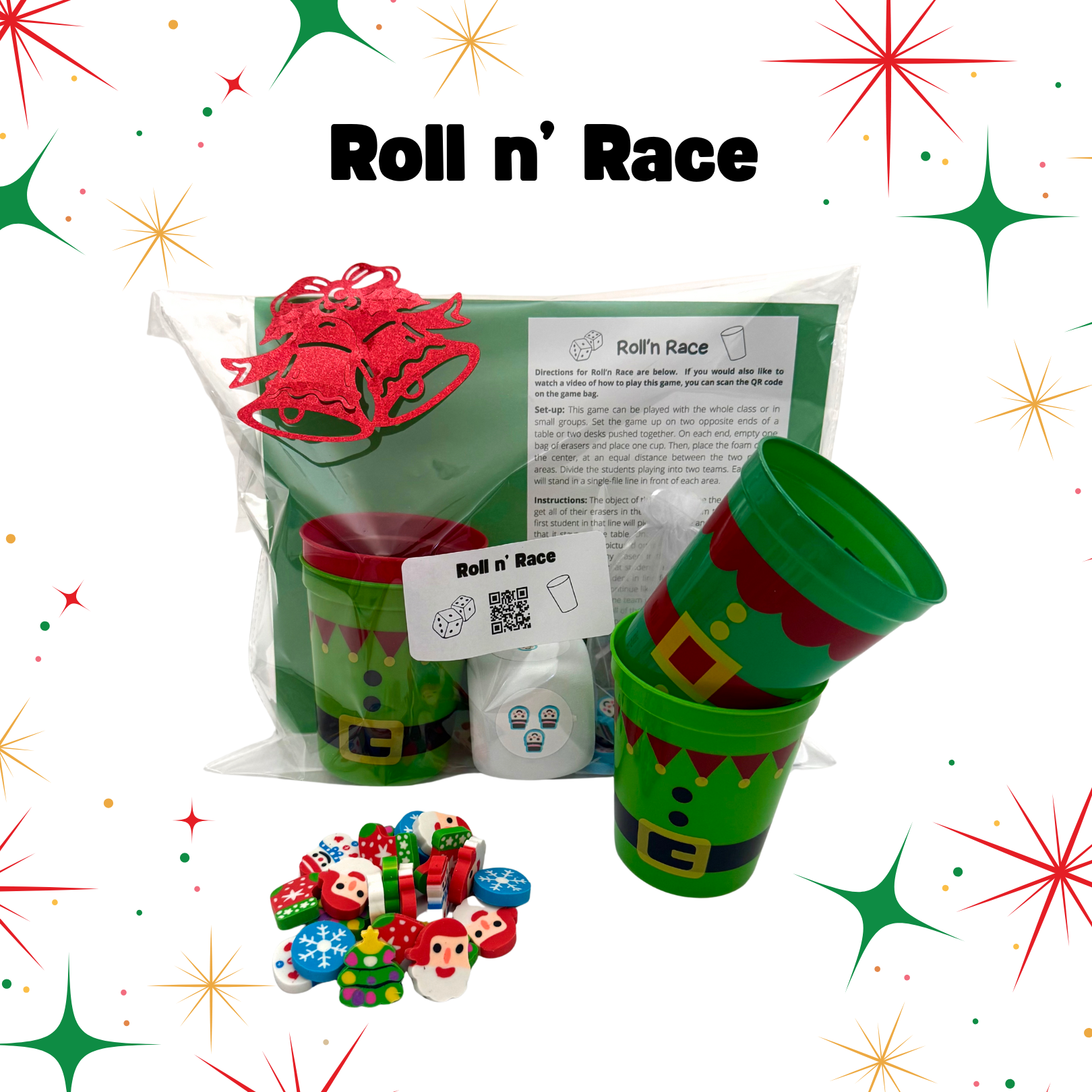 Roll n' Race - Roll, count, and race to the finish! In this fast-paced team challenge, players take turns using a jumbo die to add mystery numbers of erasers to their team’s cup. With every roll, the game gets more intense as teams compete to be the first to fill their cup. It’s all about quick thinking, teamwork, and a bit of luck! Perfect for classrooms or small groups, this game brings big energy with a fun twist each round.